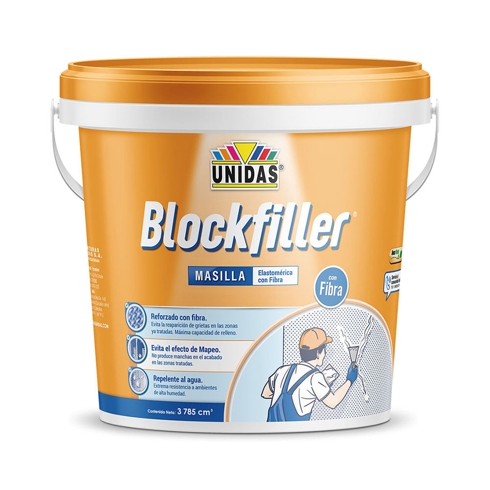 Blockfiller Fibra® de Unidas es una masilla de altos sólidos formulada con resinas acrílicas modificadas tipo elastoméricas, diseñada para corregir y sellar fisuras en superficies de mampostería antes de la aplicación de pintura. Gracias a su refuerzo con fibra, ofrece máxima elongación y capacidad de relleno, evitando retracciones y grietas posteriores.
