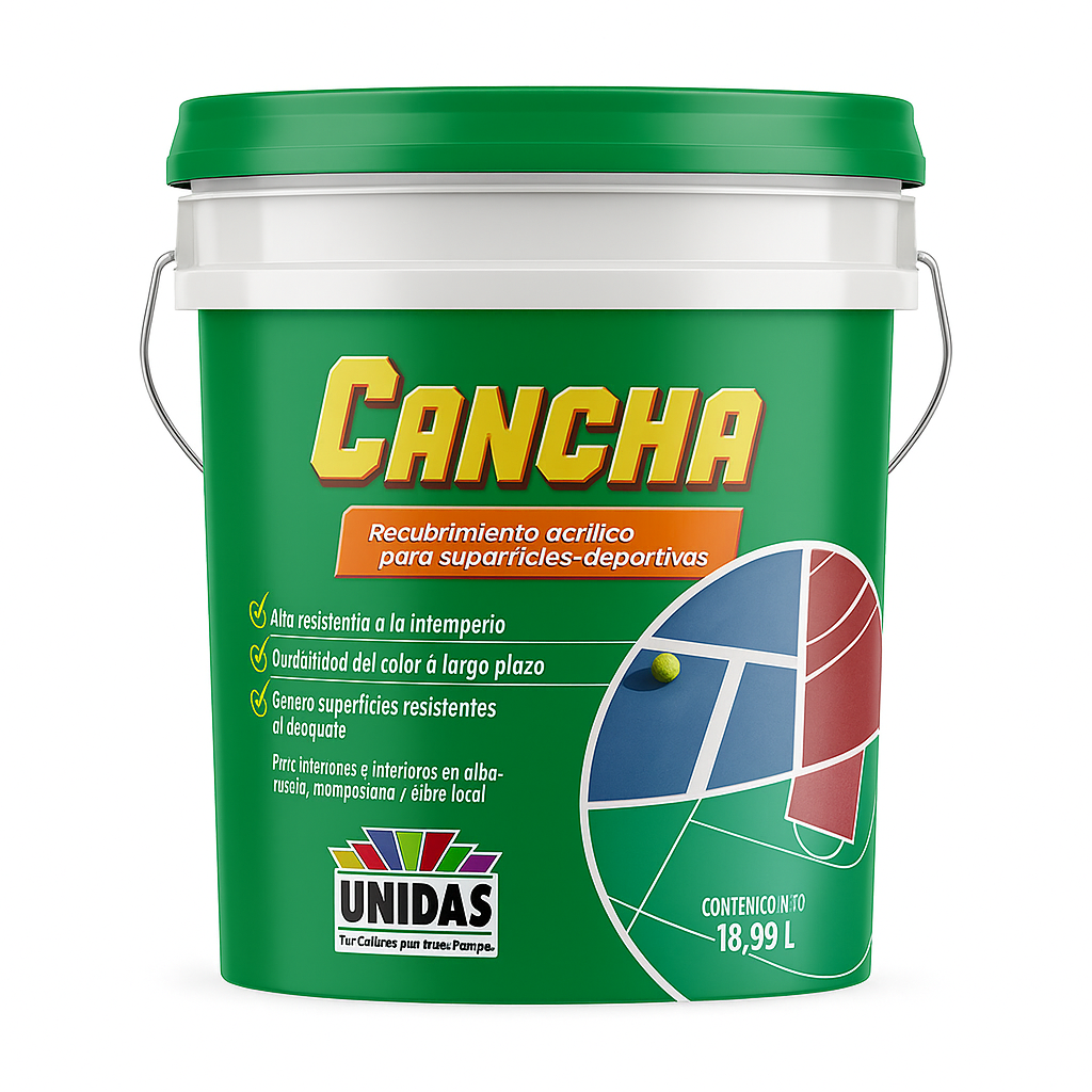 Cancha® es un recubrimiento acrílico base agua, de alta resistencia a la abrasión e intemperie, diseñado especialmente para pintar y proteger canchas deportivas de concreto. Su formulación con resinas acrílicas y pigmentos de primera calidad asegura un acabado mate uniforme, con durabilidad de color y resistencia extrema al desgaste.
