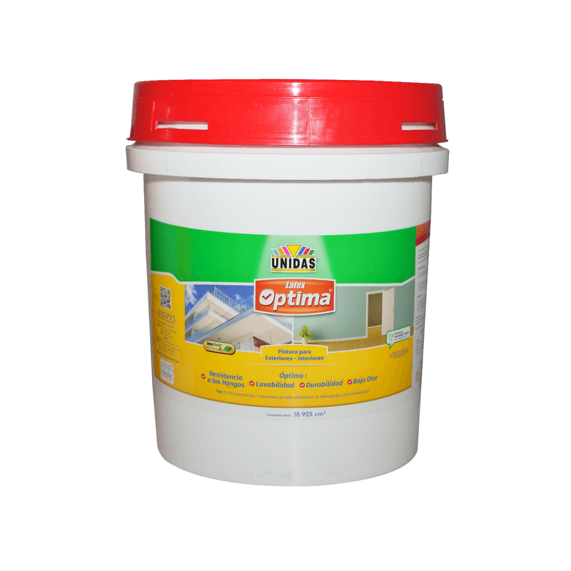 El Látex Óptima es una pintura acrílica de alta calidad y bajo olor, perfecta para quienes buscan pintar bonito, proteger sus paredes y ahorrar al mismo tiempo. Con su acabado mate aterciopelado, logra un look moderno y uniforme, mientras que su fórmula especial protege contra hongos, lluvia y cambios bruscos de clima.