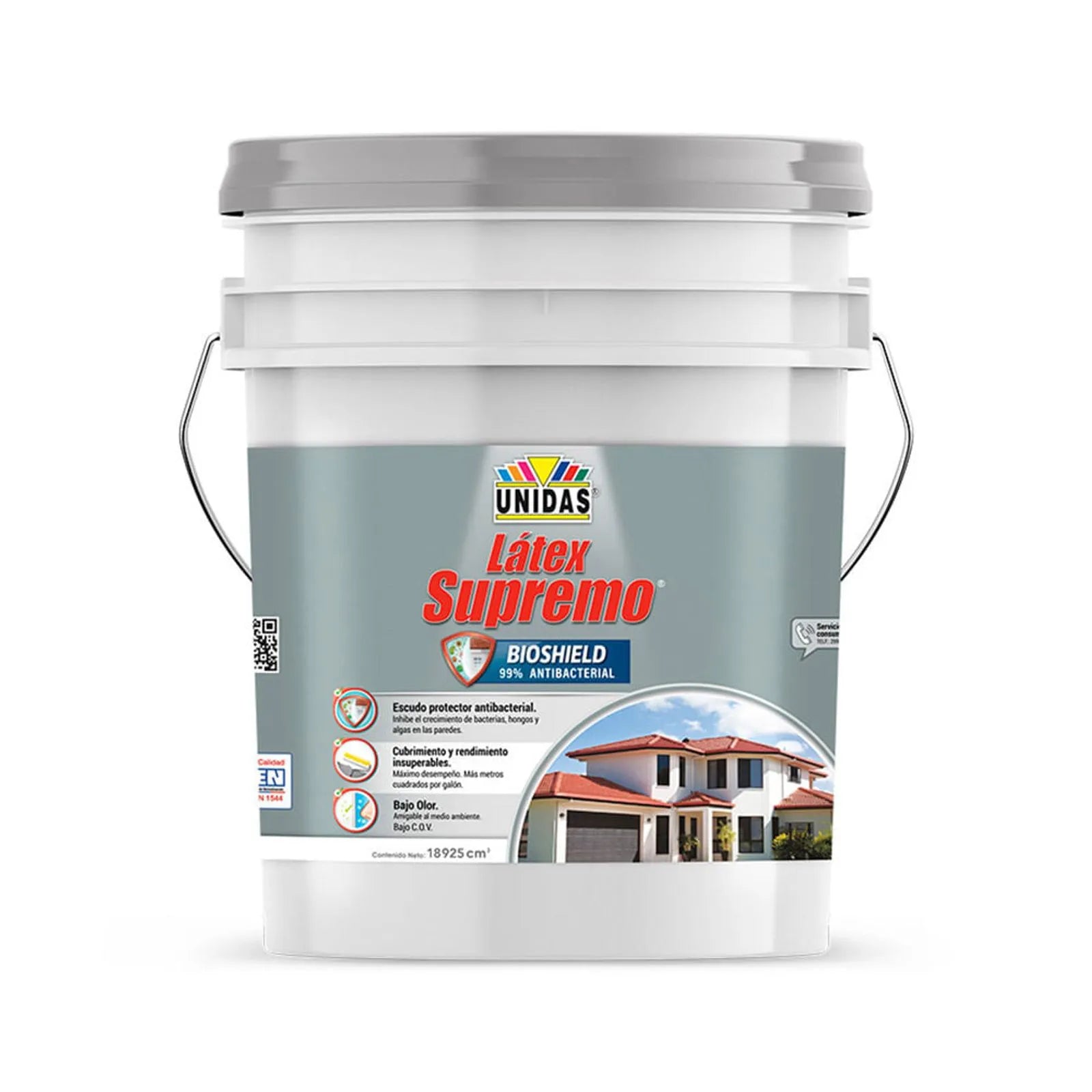 Latex Supremo Blanco es una pintura látex de alta calidad con tecnología Bioshield que ofrece un 99 % de protección antibacterial. Su fórmula de bajo olor y acabado mate garantiza un ambiente más agradable durante la aplicación y un resultado estético impecable. Diseñada para proporcionar un cubrimiento óptimo con una o dos manos, permite lograr el acabado deseado eficientemente, siempre que el sustrato tenga una intensidad similar al color final. Ideal para proyectos que requieren durabilidad y protección avanzada.