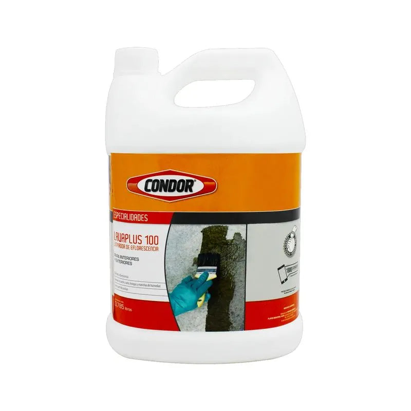 Condor Lavaplus 100® es un limpiador ácido profesional formulado para eliminar salitre, hongos, manchas y residuos de cemento en superficies de mampostería, piedra o ladrillo. Su poderosa acción desincrustante neutraliza la alcalinidad y disuelve las sales solubles que provocan eflorescencias y manchas de humedad, preparando la superficie para recibir revestimientos o pintura.