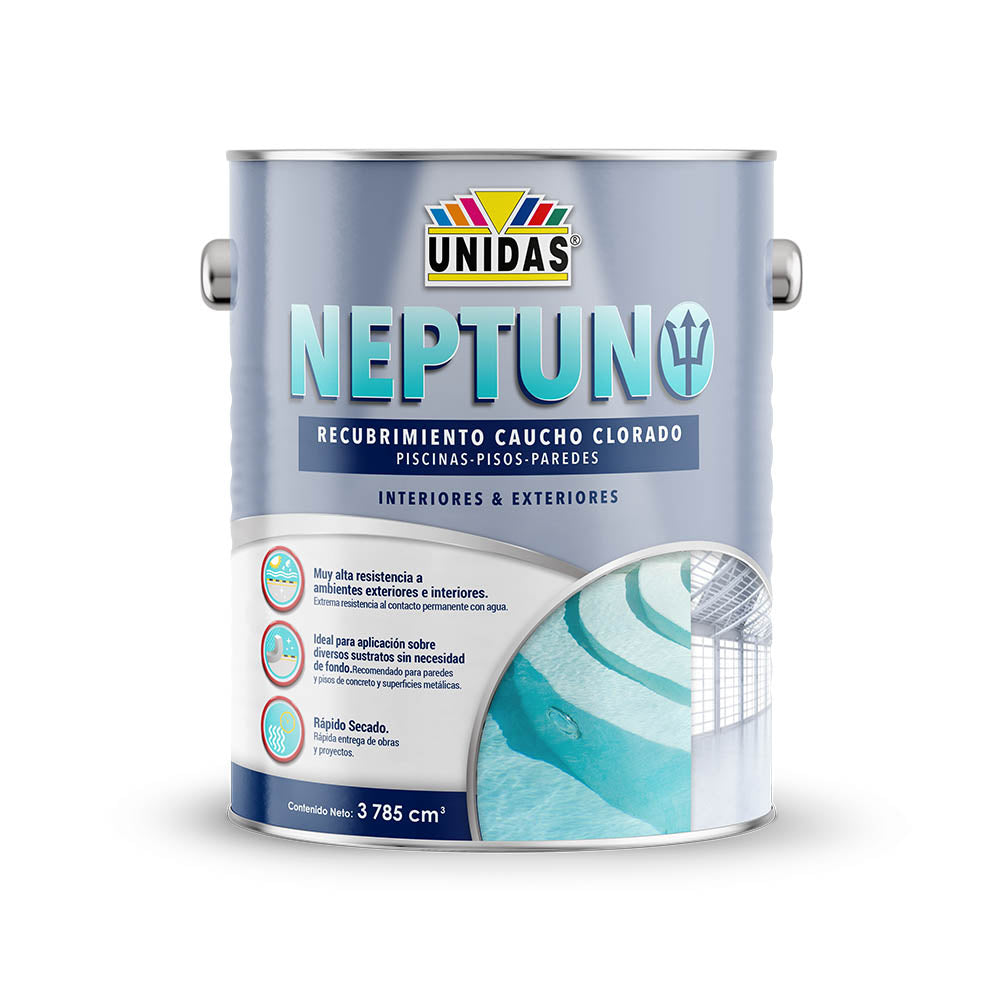 Neptuno® es un recubrimiento de alta resistencia base caucho clorado, diseñado especialmente para piscinas de concreto, cisternas y superficies expuestas a humedad constante. Su fórmula de alto performance crea una película semibrillante que resiste la inmersión prolongada en agua y asegura una durabilidad superior en ambientes interiores y exteriores.