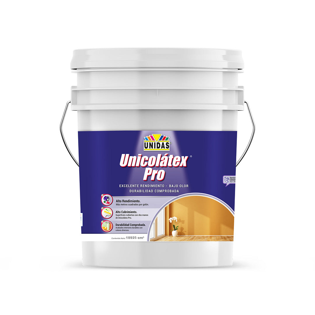 El Unicolátex Pro es una pintura látex Tipo III, ideal para quienes buscan una solución accesible y práctica para renovar interiores. Su acabado mate aterciopelado brinda un look limpio y uniforme, mientras que su fórmula de bajo olor hace más cómodo el trabajo de pintura en espacios habitados.