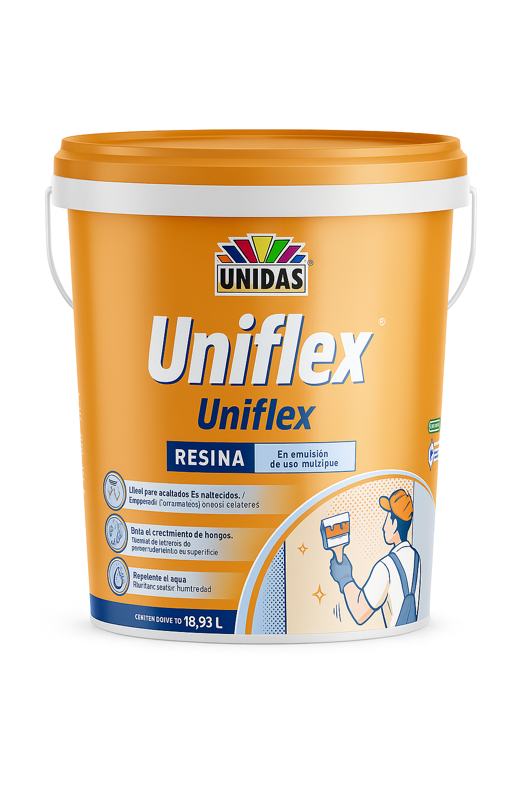 Uniflex® de Unidas es una resina acrílica de alto desempeño diseñada como solución multiuso en trabajos de mampostería. A diferencia de un sellador convencional, el Uniflex® no solo sella paredes, sino que también actúa como aglutinante, impermeabilizante y aditivo para diferentes aplicaciones en obra.